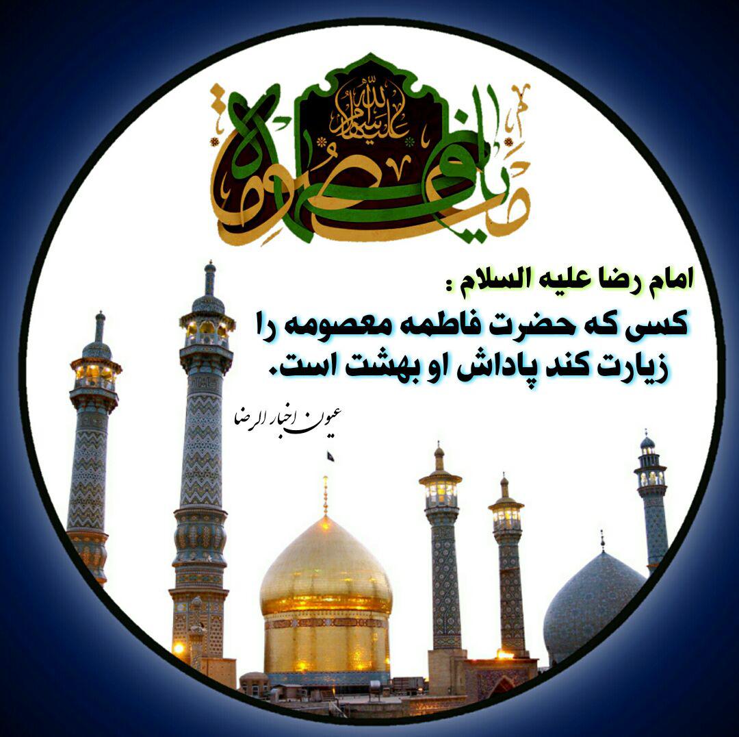 امام رضا (علیه السلام) : «مَن زَارَ المَعصُومَةَ بِقُم كَمَن زَارَنى» هركس معصومه را در قم زيارت كند،مانند كسى است كه مرا زيارت كرده است[*]