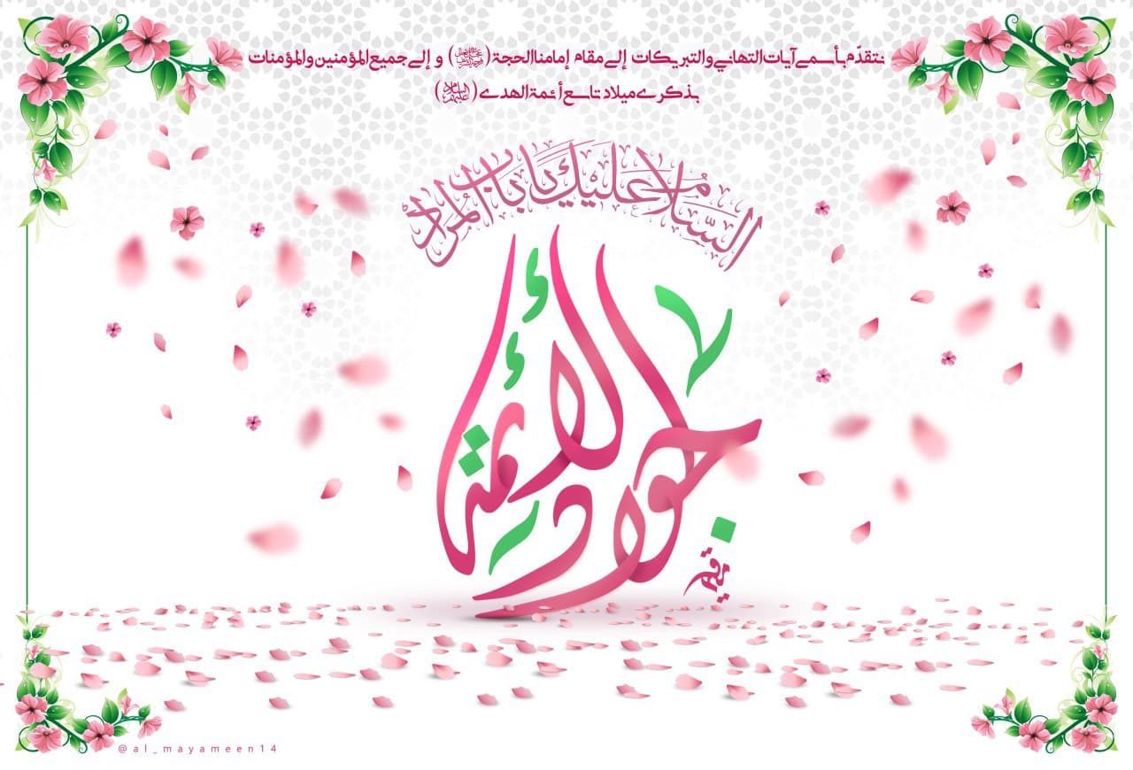به همین مناسبت تصویری طراحی شده مزین به عبارات مبارک «نتقدم باسمی آیات التهانی و التبریکات الی مقام امامنا الحجة والی جمیع المومنین و المومنات بذکری میلاد تاسع ائمة الهدی»،«السلام علیک یا باب المرداد جواد الائمه» که خدمت شما گرامیان تقدیم می کنیم.