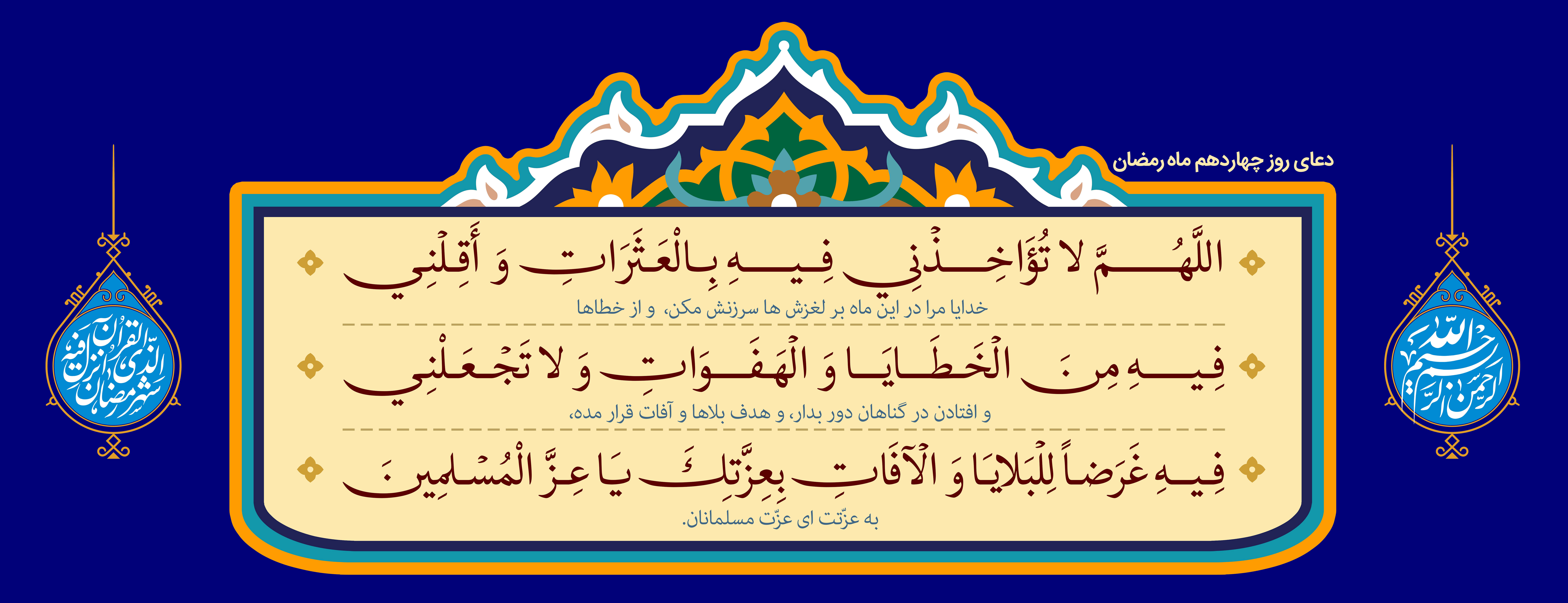 | دانلود تصویر دعای روز چهاردهم ماه رمضان (با کیفیت بسیار بالا) | 1.45 مگابایت |