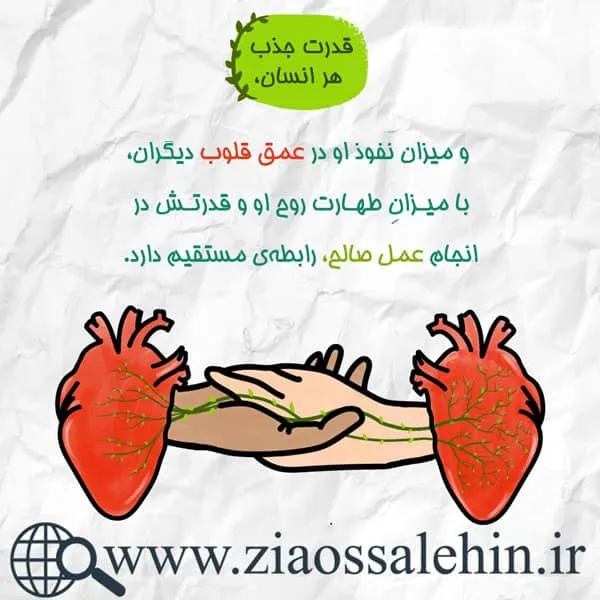قدرت جذب هر انسان، و میزان نفوذ او در عمق قلوب دیگران، با میزان طهارت روح او و قدرتش در انجام عمل صالح، رابطه مستقیم دارد.