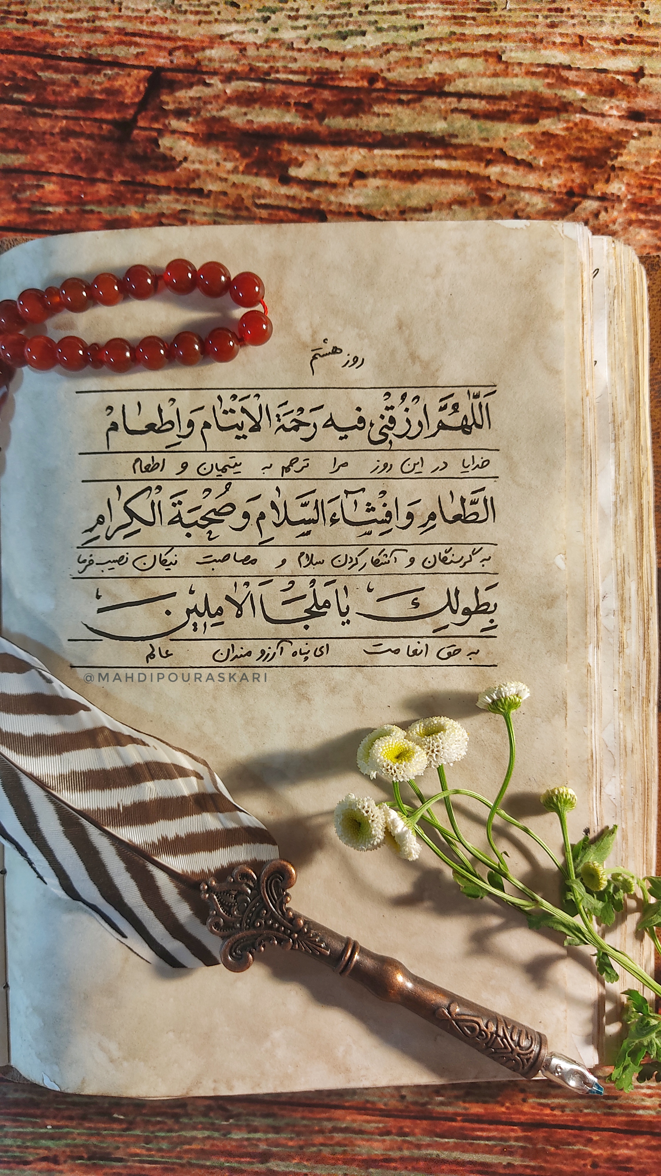 خوشنویسی دعای روز هشتم ماه مبارک رمضان به خط مهدی پورعسکری