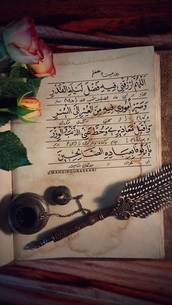 متن، ترجمه و تفسیر خوشنویسی دعای روز بیست و هفتم ماه رمضان
