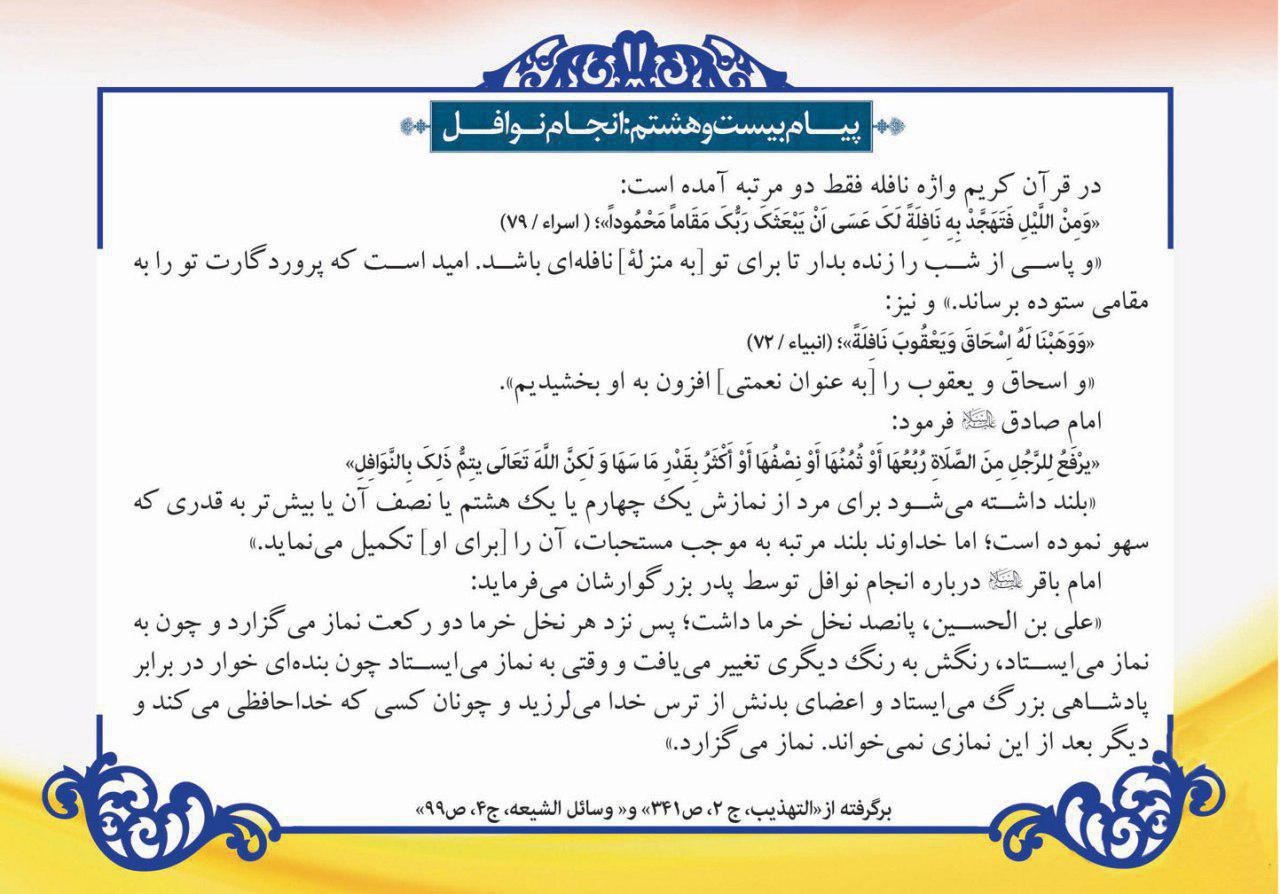 پیام دعای روز بیست و هشتم ماه مبارک رمضان: انجام نوافل