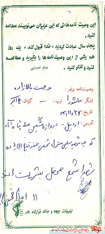 وصیت نامه شهید مرحمت بالازاده + زندگی نامه